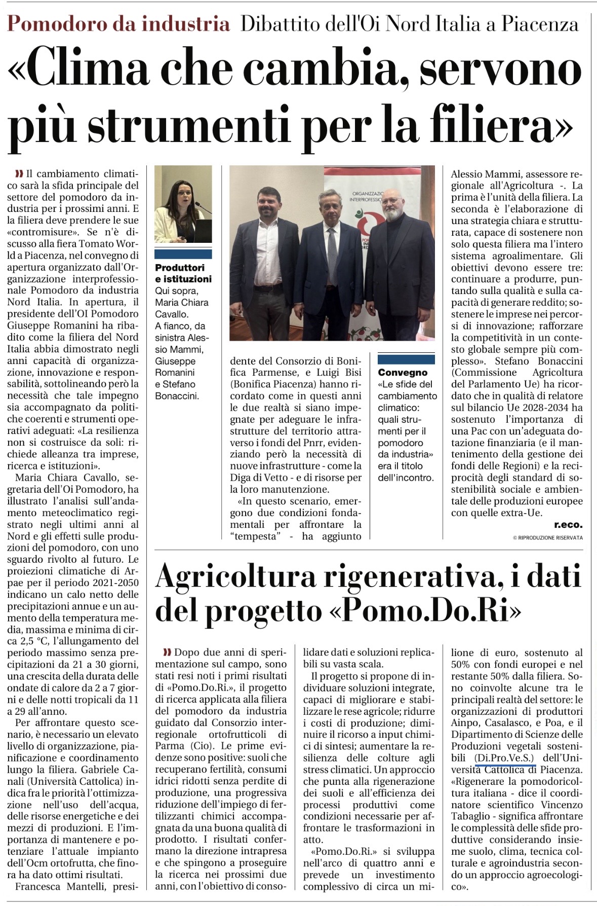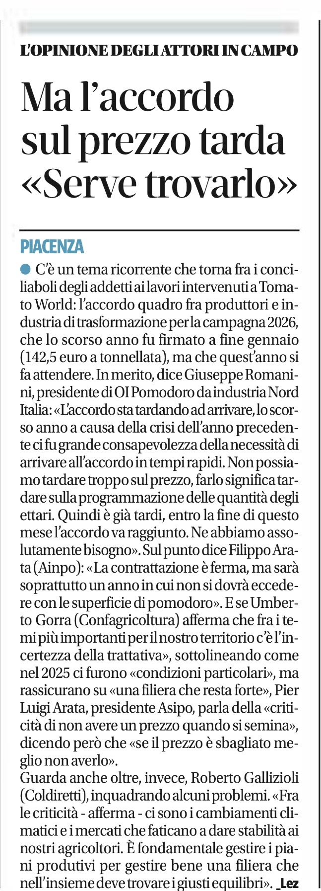 L’OI Pomodoro da Industria Nord Italia ha organizzato il convegno inaugurale di Tomato World 2026 “Le sfide del cambiamento climatico: quali strumenti per il pomodoro da industria” che si è tenuto questa mattina presso Piacenza Expo.