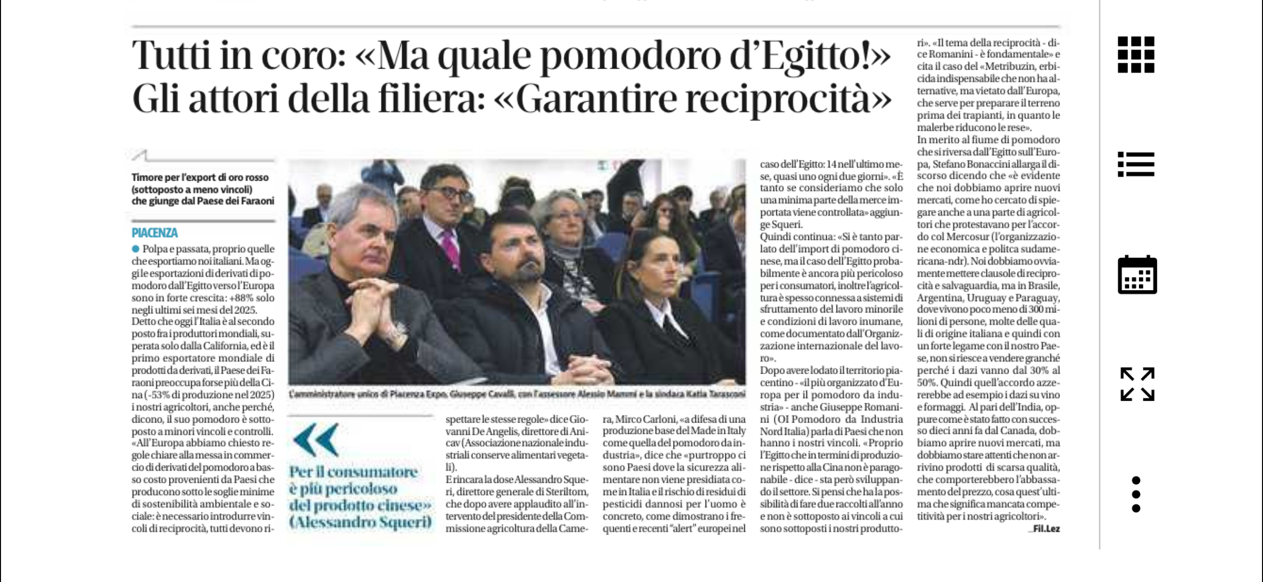 Tutti in coro: “ma quale pomodoro d'Egitto”. La filiera: “Garantire reciprocità”