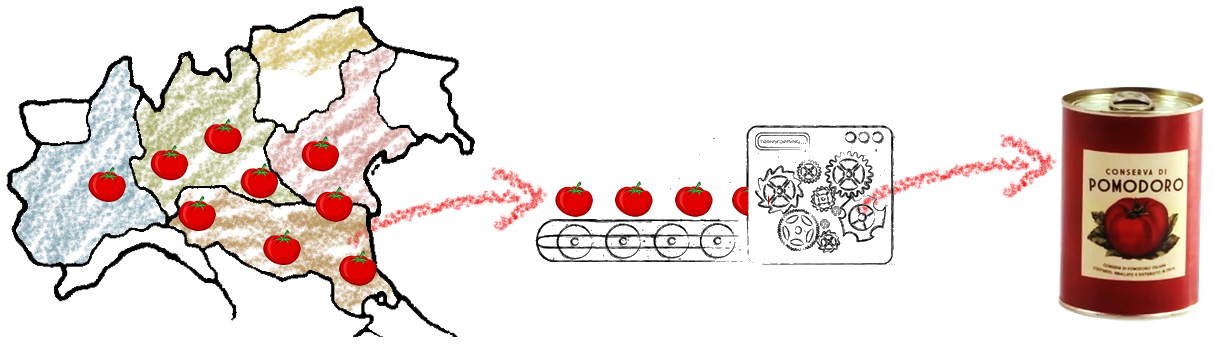 Il pomodoro coltivato del Nord Italia viene lavorato interamente dalle imprese del Nord Italia che ne effettuano la prima trasformazione.